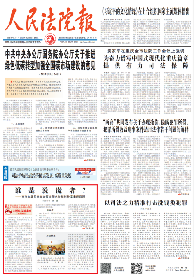 人民法院报2025年8月26日头版刊登