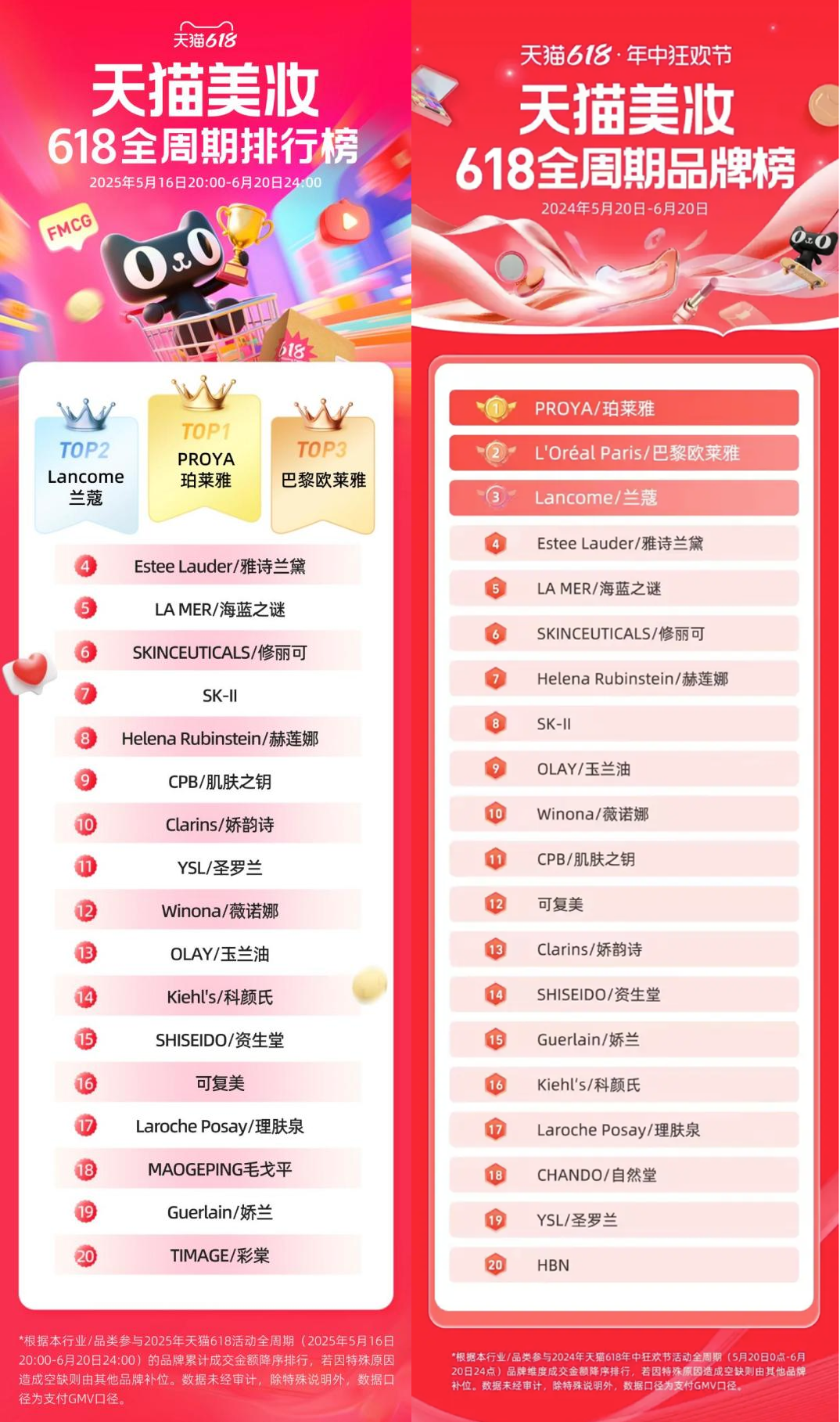 今年618期间,SK-II成为李佳琦直播间预售首日商品成交总额过亿的五个品牌之一,据天猫618全周期美妆品牌排行榜,SK-II从去年同期的第8名上升至第7名。