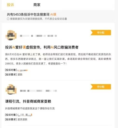 在黑猫投诉平台搜索AI卖课,相关结果高达5435条,大部分都是老年人被骗了。