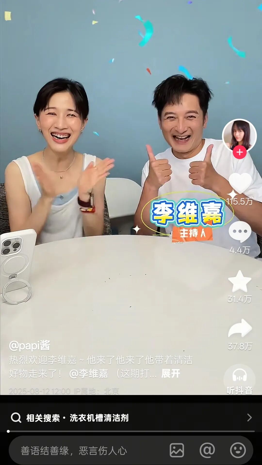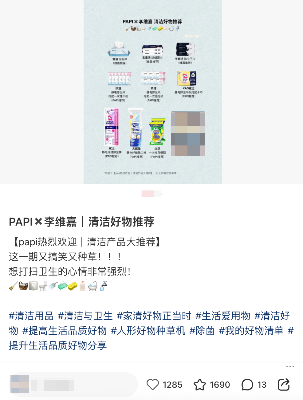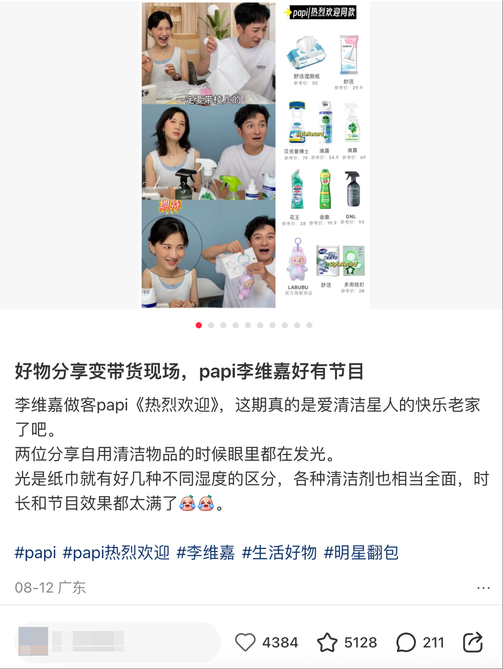 自 2024 年 3 月开播以来,《热烈欢迎》已推出 29 期,系列视频在 B 站总播放量突破 3800 万。例如,与主持人维嘉互相分享清洁好物的那一期内容就成了不折不扣的爆款,正片在小红书获得了超 10 万的点赞,在抖音也获得了超百万点赞。