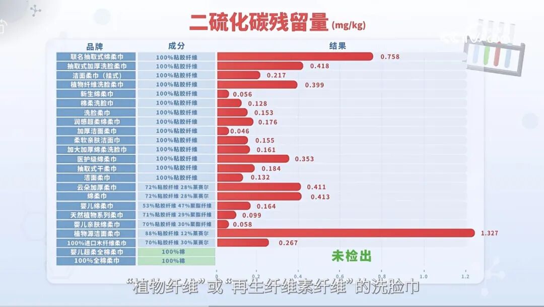 此次央视送检的23款洗脸巾里,仅2款明确标注100%棉的产品,未检出二硫化碳残留。