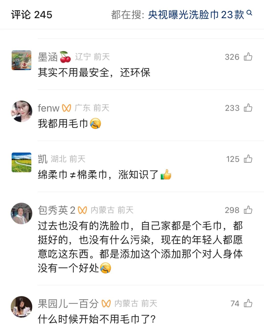 “平时经常用的几个大品牌洗脸巾,刚刚看了材质竟然都是胶粘纤维。”