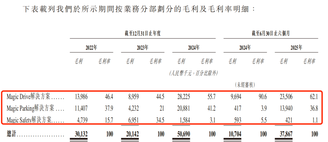 分业务来看,2025年上半年,魔视智能的Magic Drive毛利率达62.1%,但Magic Safety主动安全业务毛利率仅有1.1%。另外,报告期内,Magic Parking毛利率波动较大,这种业务毛利率不均衡的结构性问题制约了魔视智能整体盈利能力的提升。
