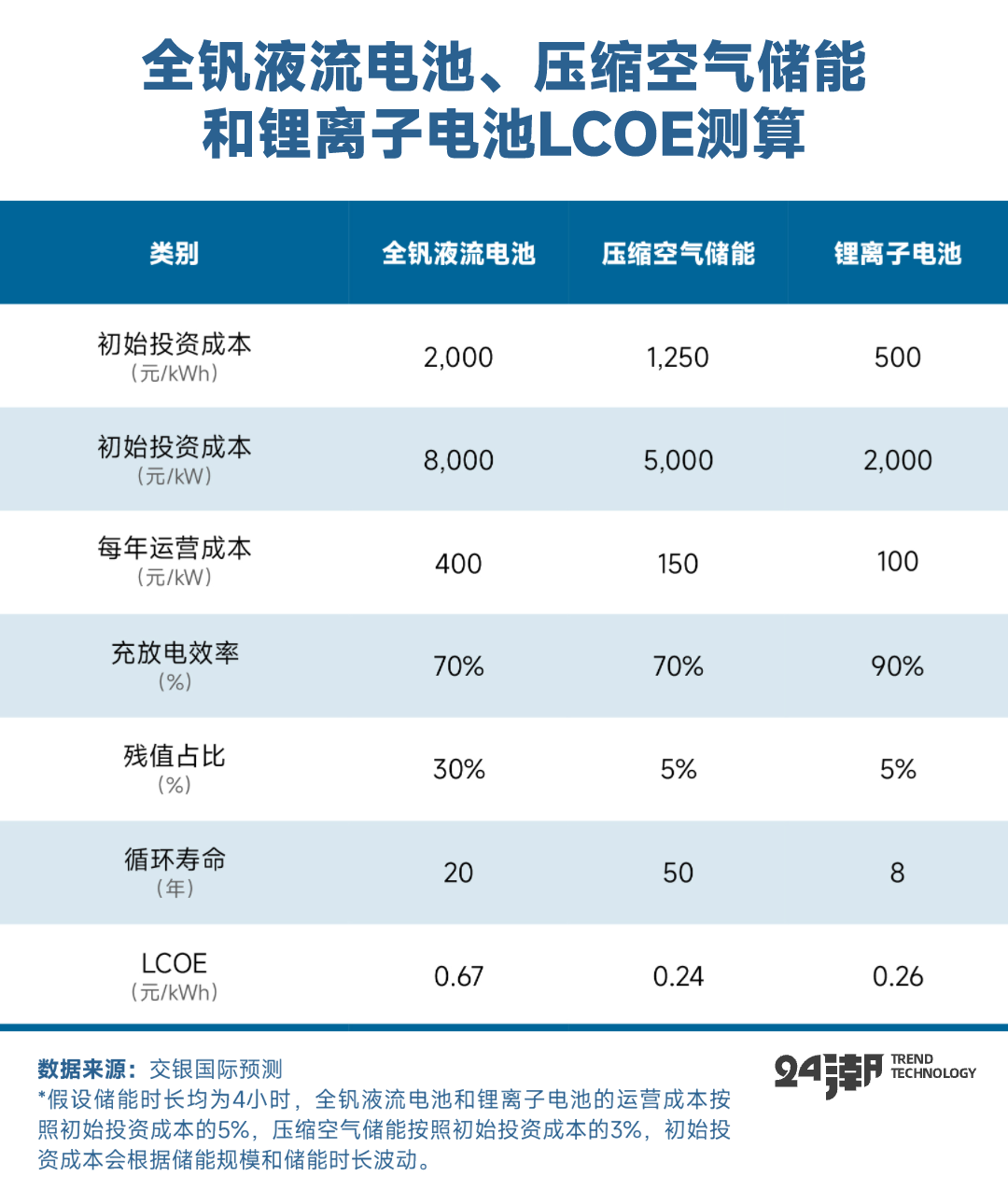 但从中长期角度观察,随着新能源发电占比逐步提升,4小时储能无法满足储能要求,交银国际分析认为液流电池和压缩空气储能在长时储能的优势将更为显著。