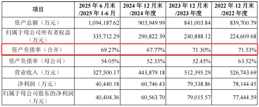 大额分红带来的直接后果,是公司资金缺口扩大,负债规模飙升——2022年到2025年上半年,振石股份资产负债率分别为71.53%、71.3%、67.77%和69.27%。长期在70%左右徘徊,显著高于A股制造业企业平均资产负债率水平。截至2025年上半年,振石股份的有息负债已达52.99亿,其货币资金仅14.89亿。