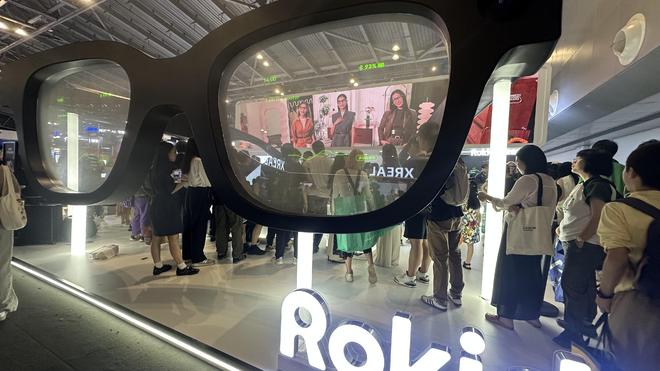 就连一向主打专业性能的头部玩家XREAL,也在新款AR眼镜的包装里附赠了可替换的潮流贴纸。XREAL重点展出的是旗下最新款AR眼镜——XREAL One Pro。赛道内另一位头部玩家Rokid展位在XREAL对门,后者在国内市场上率先推出AR+AI全智能眼镜。