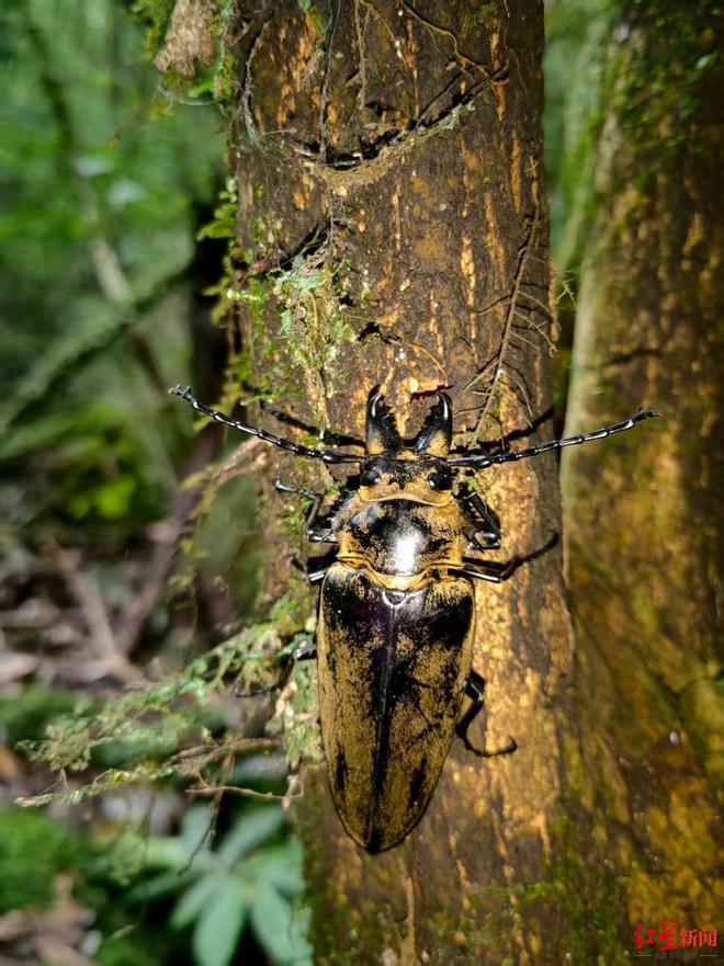 8月3日,红星新闻记者从昆虫学家、成都华希昆虫博物馆馆长赵力处获悉,在云南哀牢山国家级自然保护区海拔2450米高处,首次发现中国西南地区已知的最大天牛——威氏王天牛。有网友称云南王天牛,填补了2450米高海拔该物种分布的空白。