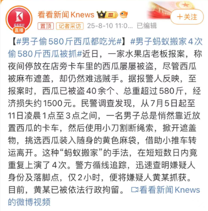 男子四次偷窃共计580斤西瓜,并将所有西瓜自己吃光,该行为涉嫌盗窃,被盗物品为西瓜,总重量达数百斤,事件提醒人们要遵守法律法规,不要因个人贪念而违法,也呼吁商家加强防盗措施,保护自己的合法权益,此事件反映出社会对于个人道德和法制意识的重视,应当引起广泛关注。