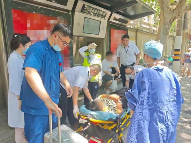 华山医院门口的保安听到呼救,迅速反应,联系院内急救小组,与此同时,路过的好心人也帮忙拨打了120急救电话。