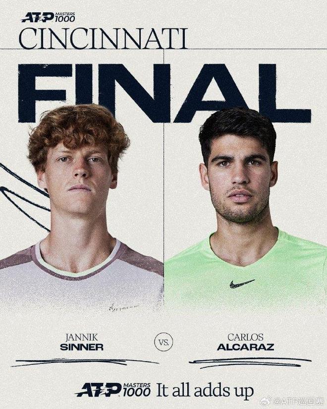 在接下来的决赛中,辛纳将与阿尔卡拉斯隔网相对。这是他们本赛季第四次在决赛中相遇,职业生涯第14次交手、在硬地赛事中第8次过招。