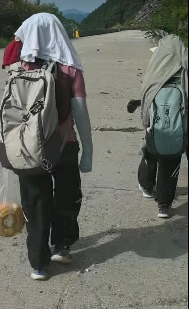 处理好公司的事情后,7月17日下午6时许,吴广带着两个孩子打车来到东莞大岭山,当晚徒步8公里后入住酒店。