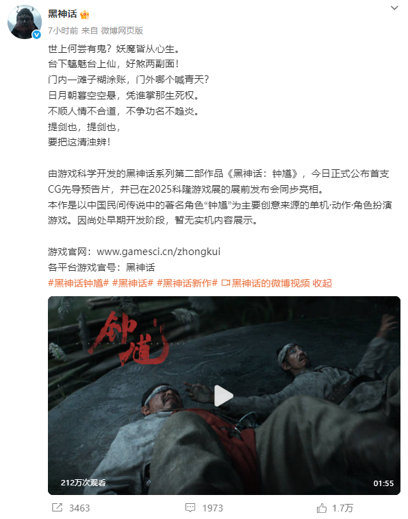 而在一年后的今天,游戏科学公布旗下最新作品《黑神话:钟馗》再度引爆网络。