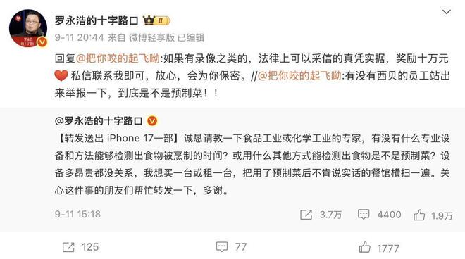 罗永浩现身西贝门店兑现十万现金悬赏奖励