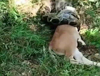 广东巨蟒生吞小牛现场,抓捕惊险瞬间