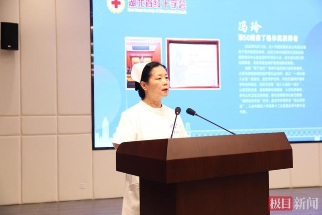 据悉,冯玲自二十世纪九十年代起就投身传染病护理事业,是湖北省最早参与艾滋病患者照护的护理人员之一。35年来,她始终坚守在艾滋病、病毒性肝炎等传染病护理与防控一线,开创多学科协作护理模式,培养护理学员7000余名,通过慈善项目资助困难学生超1000人次。通过此次演讲,冯玲向全社会传递了人道理念,诠释了南丁格尔“尊重生命、平等博爱”的崇高精神内涵,为湖北省应急救护事业的发展注入了强大的精神动力。