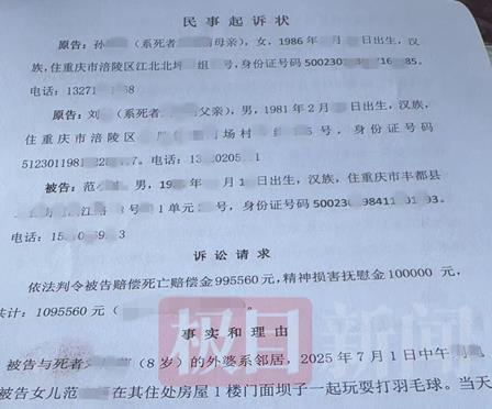 孙女士认为范某应对她女儿之死担责,事发后,范某一直没有主动联系过她表达歉意。于是,她和家人一起将范某告上了法院,起诉对方侵犯萌萌的生命权、健康权、身体权。极目新闻记者在起诉状上看到,孙女士和家人的诉讼请求是:依法判令被告赔偿死亡赔偿金99.556万元、精神损害抚慰金10万元,共计109.556元。