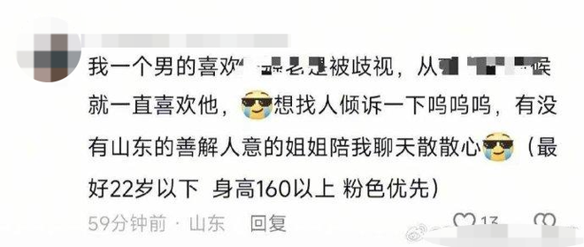 根据网友发帖,一视频账号在视频平台他人的视频评论区发布了一段评论,内容包括“有没有山东的善解人意的姐姐陪我聊天散散心”“最好22岁以下 身高160以上……”。