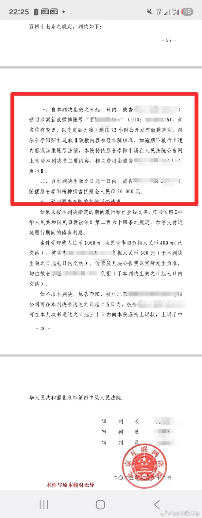 代理律师周兆成表示,这次胜诉不仅是李阳个人名誉保卫战的胜利,更是为所有被网暴困扰的名人和企业树立一个“教科书级”维权案例。