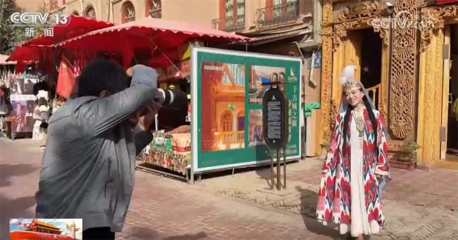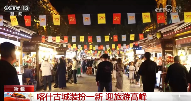 新疆喀什古城景区这几天每天都举行开城仪式,迎接来自全国各地的游客。古城街巷里挂满了国旗,营造出浓浓的国庆氛围。景区人气火爆带来了商业机遇,身着民族传统服饰的游客随处可见,旅拍摄影师在一旁记录。
