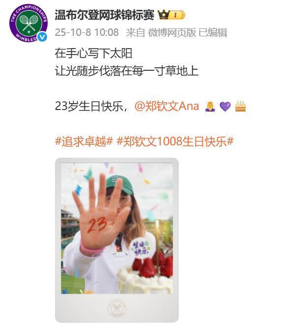 郑钦文23岁生日获四大满贯祝福与贺电