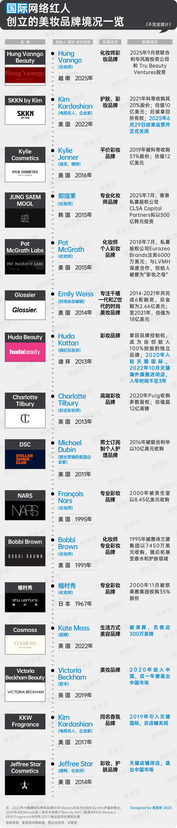 由网络红人、明星等名人所创的美妆品牌,出生起就自带流量,尤其是在社媒主导的互联网时代,这类带着名人光环效应加持的品牌热度持续上升,其中不乏有获得超10亿美金,甚至20亿美金高估值、获头部美妆企业青睐的案例。