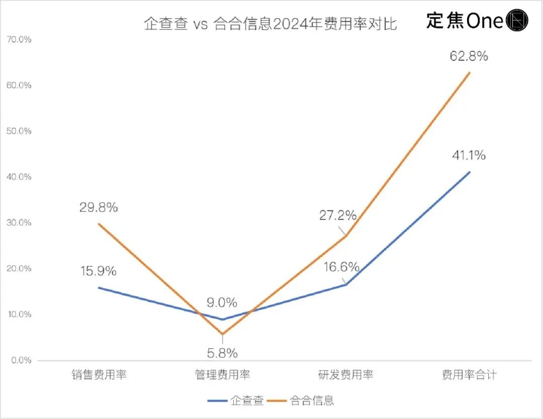 也就是说,合合信息每赚100元,要拿出63元去投入销售和研发。而企查查只拿出41元。