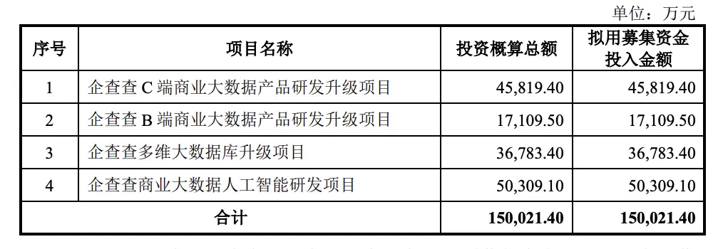 从招股书披露的募集资金用途看,15亿元中有约10亿元(66.5%)将投入产品升级——包括C端4.58亿元、B端1.71亿元、多维大数据库3.68亿元,还有5亿用于AI研发。可见企查查确实意识到了技术投入的重要性。