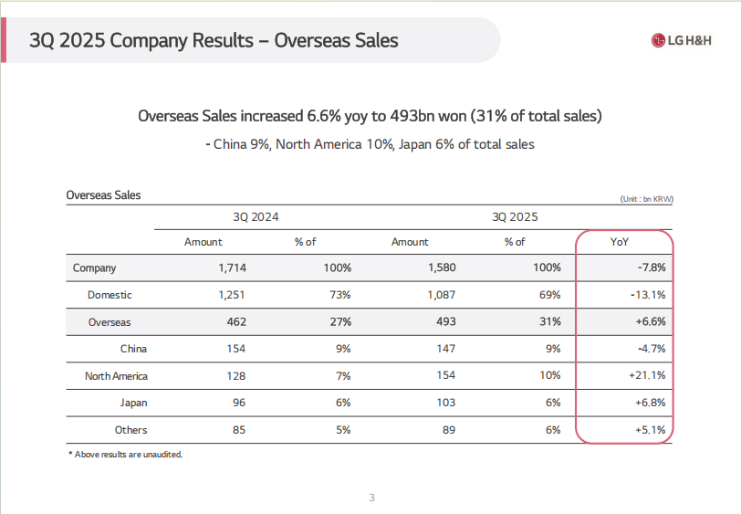 值得注意的是,这次韩妆热潮的中心已不再是中国。有报道称,2025年上半年,韩妆对华出口额占比首次跌破20%。而爱茉莉太平洋和LG生活健康两大韩妆巨头的最新财报也显示,2025年第三季度,中国区销售额占比均已降至10%左右。