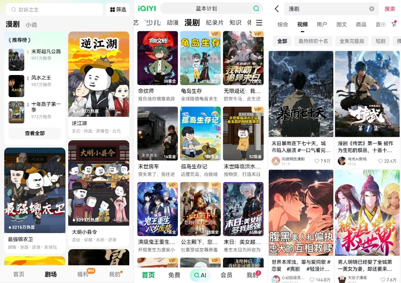 各平台的漫剧