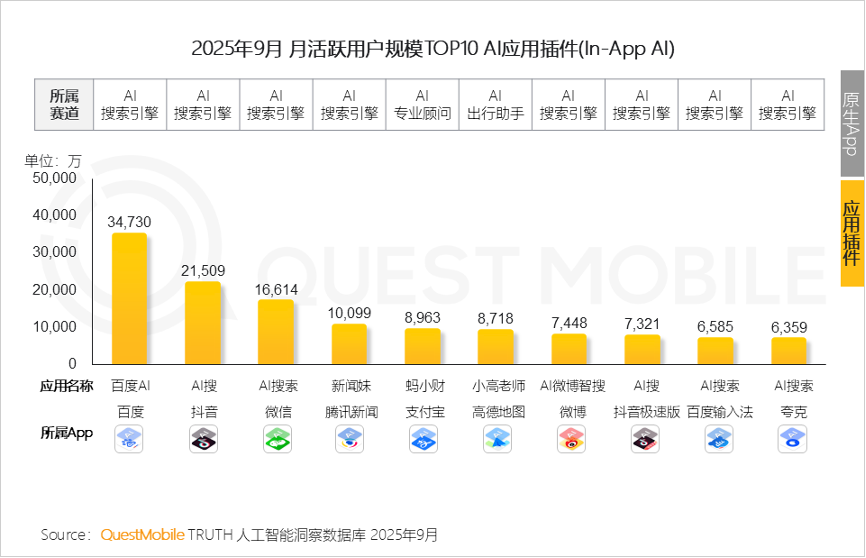In-APP AI和原生的AI应用不同,意味着内置AI插件,夸克的搜索调用了大模型所以也算得上是AI搜索。