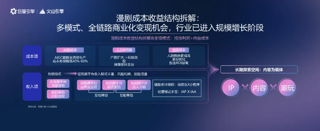 虽说“人不要和人性做斗争”,但产业升级同样也是大势所趋。因此,长剧精品化了,就把“低级趣味”让给了短剧;而如今短剧更快进入了精品化流程,群众这点不足为外人道的吃速食垃圾的需求,又着落到了漫剧身上。